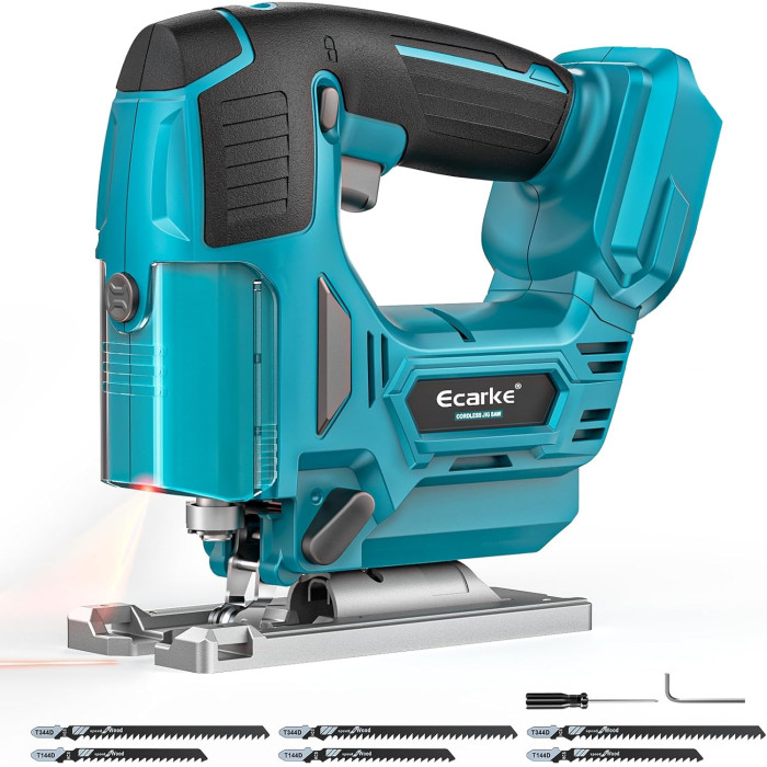 Бездротова лобзикова пилка Ecarke - це портативний електроінструмент для різання дерева, пластику, алюмінію та інших матеріалів. Інструмент сумісний з акумуляторами Makita 18 V Li-Ion, але акумулятор і зарядний пристрій не входять у комплект - купуються окремо.