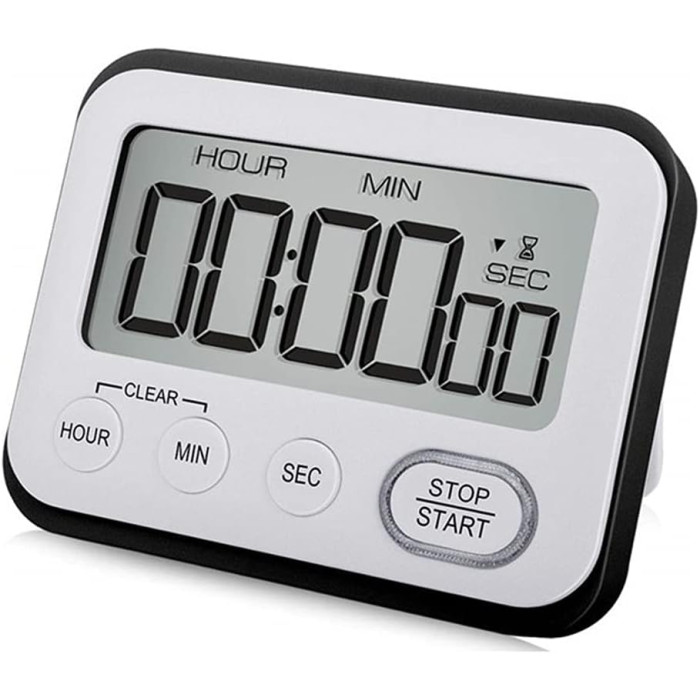 Цей цифровий таймер/секундомір - універсальний пристрій для відліку часу, який чудово підходить для вчителів, занять у класі, приготування їжі, вправ, домашніх справ та інших завдань. Він може працювати як таймер зворотного відліку (count-down), так і секундомір (count-up), а також показує поточний час. На задній стороні - магніт для кріплення (наприклад, на дошку чи холодильник), також є складна підставка, щоб поставити таймер на стіл. Дисплей із великими цифрами добре видно здалеку, а звуковий сигнал – гучний, щоб не пропустити закінчення відліку.