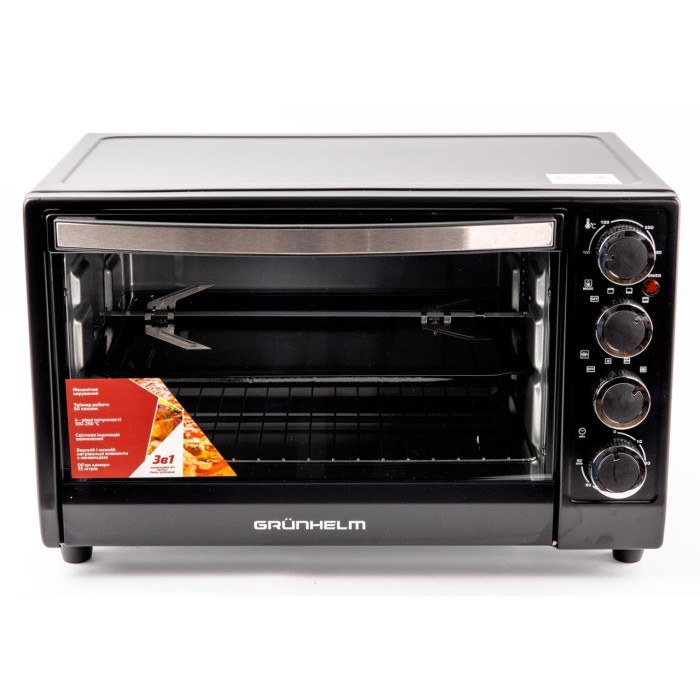 Всередині передбачені режими верхнього та нижнього нагріву, гриль, конвекція та рожен, що розширює можливості приготування. У комплект зазвичай входять деко, грати та рожен, що робить пристрій універсальним для різних типів страв.