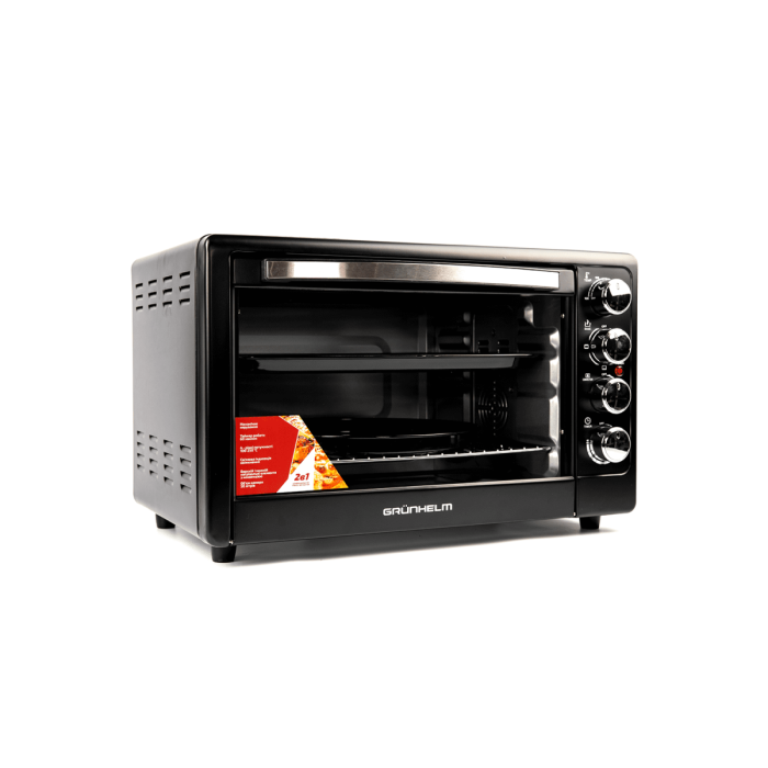 Електрична піч Grunhelm GN50AC - це містка та функціональна міні-піч, призначена для приготування широкого спектру страв у домашніх умовах. Завдяки об'єму 50 літрів та потужності 2200 Вт вона підходить як для повсякденного використання, так і для приготування на велику родину. Пристрій поєднує функції духовки, грилю і конвекції, забезпечуючи рівномірне приготування їжі і зручність експлуатації.