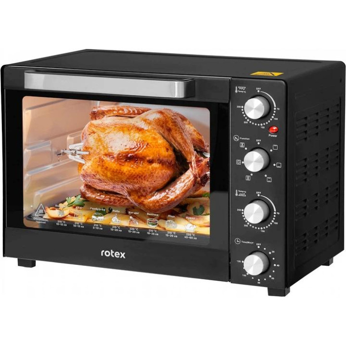 Електрична піч Rotex ROT650-B – це містка та функціональна настільна духовка, призначена для приготування різноманітних страв у домашніх умовах. Завдяки об'єму 60 літрів вона дозволяє готувати великі порції їжі, а потужність 2000 Вт забезпечує швидке нагрівання та ефективне приготування.