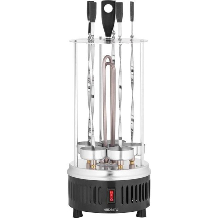 Ardesto VEG-HY1000 – компактний пристрій для приготування шашлику та інших страв у домашніх умовах. Прилад дозволяє готувати м'ясо, овочі, гриби або морепродукти без використання олії, завдяки чому страви виходять кориснішими. Конструкція передбачає автоматичне обертання шампурів, що забезпечує рівномірне прожарювання з усіх боків.