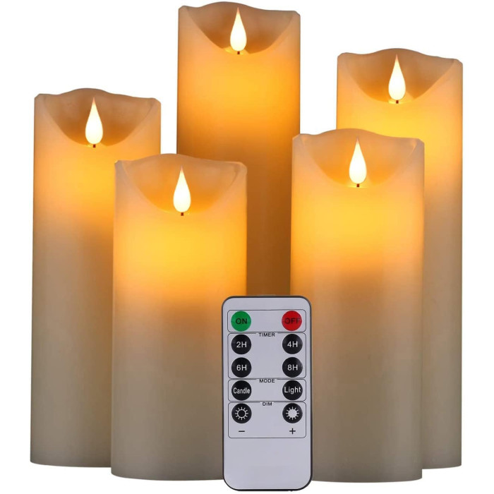 Набір свічок без справжнього полум'я призначений для декоративного освітлення інтер'єрів. Свічки виконані з гладкого воску та створюють ефект мерехтливого вогню завдяки технології світлодіодного «полум'я», яка імітує справжнє світло свічки. Завдяки комплекту різної висоти вони створюють виразну композицію, яка підходить для прикраси будинку, святкових урочистостей та особливих подій. Ці свічки безпечні у використанні, оскільки не мають відкритого вогню, диму та гарячого полум'я, при цьому візуально нагадують традиційні свічки.
