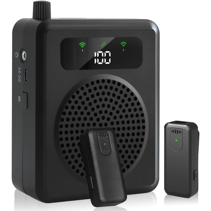 Портативный усилитель голоса с беспроводным микрофоном - это удобное решение для усиления речи в аудитории, на занятиях, экскурсиях и публичных выступлениях. Устройство сочетает компактный динамик и гарнитуру, позволяя говорить свободно и без напряжения, при этом звук остается четким и хорошо слышимым даже на расстоянии.