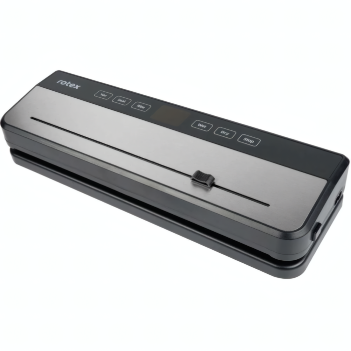 Вакууматор Rotex RVS200-S ProVac - побутовий вакуумний пакувальник для домашнього використання. Пристрій ефективно відкачує повітря зі спеціальних пакетів і надійно запаює їх, що дозволяє значно продовжити термін зберігання продуктів, зберегти їх свіжість, смак та корисні властивості. Відрізняється електронною панеллю керування та наявністю LED-індикації роботи.
